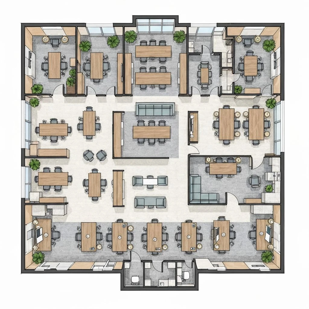 Discover how our AI-powered office floor plan designer creates productive workspaces